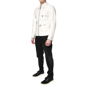 Dolce & Gabbana White Collared Full Zip Biker Coat Jacket