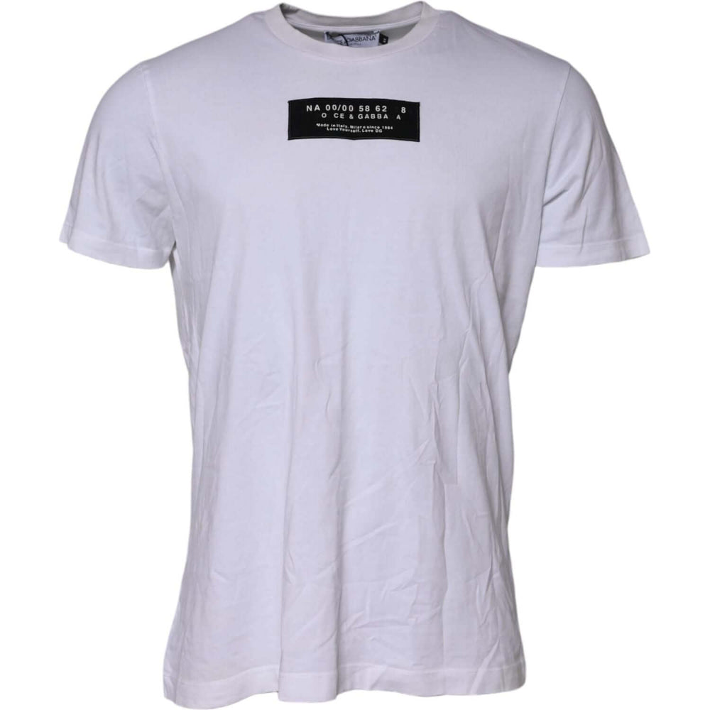Dolce & Gabbana White Cotton Logo Patch Crew Neck T-shirt