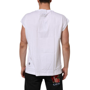 Dolce & Gabbana White Cotton Sleeveless Printed Tank T-shirt