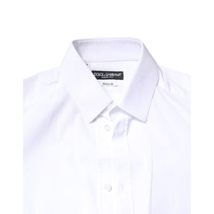 Dolce & Gabbana White GOLD Cotton Long Sleeves Dress Shirt