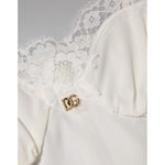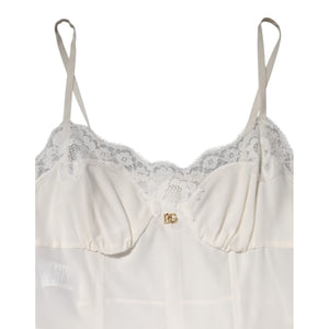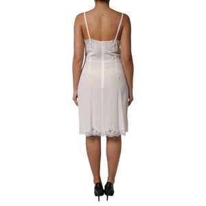 Dolce & Gabbana White Lace Gold DG Logo Silk Dress Sleepwear