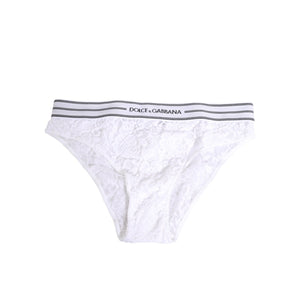 Dolce & Gabbana White Lace Slip Brief Logo Waistband Underwear