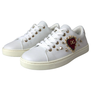 Dolce & Gabbana White Leather Gold Red Heart Sneakers Shoes