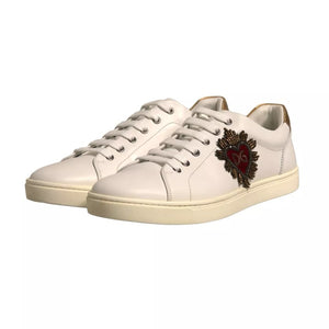 Dolce & Gabbana White Leather Heart Embellished Sneakers Shoes