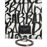 Dolce & Gabbana White Leather Lanyard Logo Print Card Holder Wallet
