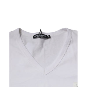 Dolce & Gabbana White Logo V-neck Short Sleeve T-shirt
