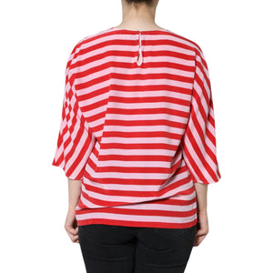 Dolce & Gabbana White Red Striped Silk Round Neck T-shirt