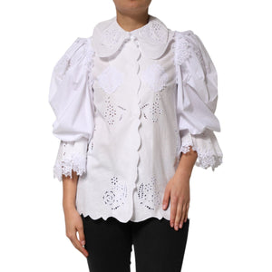 Dolce & Gabbana White Ruffled Lace Embellished Blouse Top