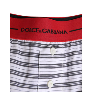 Dolce & Gabbana White Striped Cotton Red Waistband Shorts Swimwear