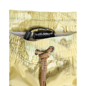 Dolce & Gabbana Yellow World Map Polyester Elastic Waistband Swimwear