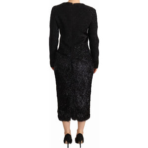 优雅黑色缀饰中长连衣裙