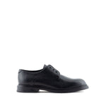 black calf leather grained texture embossed logo to the side front lace-up fastening round toe low block heel Leather laced shoes Size and Fit - Heel 1,6 in / 4 cm; Platform 0,4 in / 1 cm