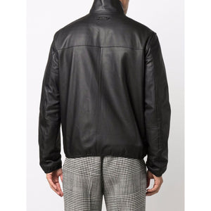 black lamb skin spread collar front zip fastening long sleeves two front welt pockets Leather zipped jacket