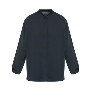 midnight blue concealed front button fastening buttoned-cuff sleeves band collar Longl-sleeves shirt Size and Fit - This piece fits true to size. We recommend you get your regular size. Model is 1,75m / 5ft 8in wearing size 40 (IT)