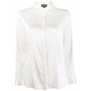 White silk blend long-sleeve silk shirt from EMPORIO ARMANI featuring classic collar, concealed front button fastening, long sleeves, buttoned cuffs and straight hem. Silk shirt Size and Fit - This piece fits true to size. We recommend you get your regular size. Model is 1,75m / 5ft 8in wearing size 40 (IT)