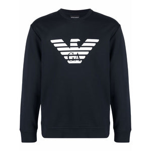 Navy blue modal-cotton blend logo-print crew-neck sweatshirt from EMPORIO ARMANI featuring jersey fleece, logo print to the front, crew neck, long sleeves and straight hem. POSITIVELY CONSCIOUS: This Planet Conscious product contains at least 50% eco-materials, which are independently certified as or widely recognised for having a lower environmental impact.. Logo cotton sweatshirt Size and Fit - This piece fits true to size. We recommend you get your regular size. Model is 1,84m / 6ft 1in wearing size M