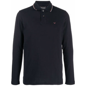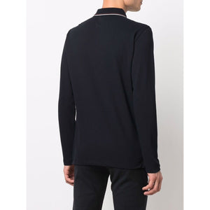 navy blue cotton blend logo print at the chest polo collar long sleeves straight hem Logo cotton polo shirt