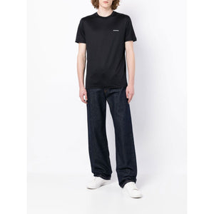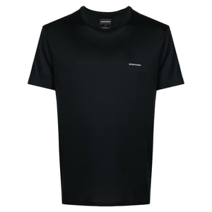 navy blue/cloud white lyocell blend logo print to the front crew neck short sleeves straight hem Logo cotton blend t-shirt