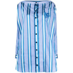 vertical-stripe long-sleeve shirt dress from ETRO featuring blue, silk, vertical stripe pattern, embroidered logo at the chest, off-shoulder, long sleeves and front button fastening. Striped cotton mini dress Size and Fit - This piece fits true to size. We recommend you get your regular size. Model is 1,75m / 5ft 8in wearing size 40 (IT)