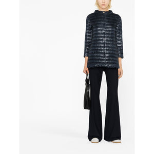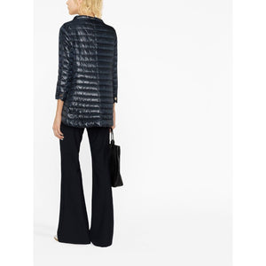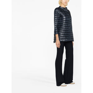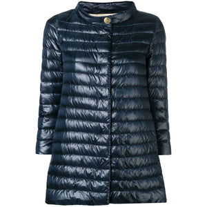 Founded in 1948, Herno offers a wide range of versatile, easy to wear reversible coats for city wear or weekend getaways. This blue feather down and cotton blend funnel neck padded jacket from Herno features a press stud fastening, cropped sleeves, horizontal panels, an a-line shape, a curved hemline and a long length. Nylon midi down jacket Size and Fit - This piece fits true to size. We recommend you get your regular size. Model is 1,75m / 5ft 8in wearing size 40 (IT)
