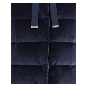 The Chenille-effect cotton Down Jacket by Herno features an adjustable drawstring high collar for comfort and protection. The front snap-button closure offers practicality, while the two side welt pockets add functionality. The quilted and padded design ensures warmth and modern style, ideal for facing the cold season with elegance.