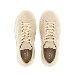 • Top view of beige Hogan Pre Sneakers Hogan H-Stripes with lace-up fastening and logo-embroidered tongue.