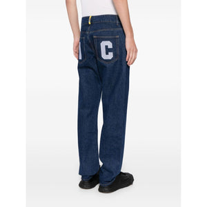 indigo blue cotton denim graphic print to the front logo patch to the rear belt loops front button and zip fastening classic five pockets straight leg straight hem Running Dog denim jeans Size and Fit - This piece fits true to size. We recommend you get your regular size. Model is 1,84m / 6ft 1in wearing size 32 (WAIST CM)