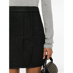 black cotton blend knitted construction elasticated waistband front slit straight hem Knitted mini skirt Size and Fit - This piece fits true to size. We recommend you get your regular size. Model is 1,75m / 5ft 8in wearing size 36 (FR)