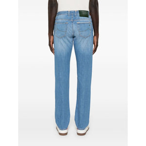 logo patch to the rear Slim fit denim jeans Size and Fit - This piece fits true to size. We recommend you get your regular size. Model is 1,84m / 6ft 1in wearing size 32 (WAIST CM)