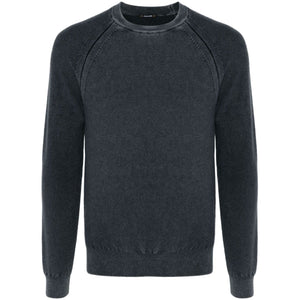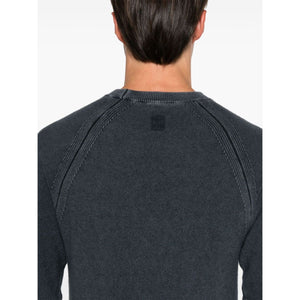 navy blue cashmere knitted construction logo patch to the rear crew neck long raglan sleeves ribbed cuffs and hem Cashmere crewneck sweater Size and Fit - This piece fits true to size. We recommend you get your regular size. Model is 1,84m / 6ft 1in wearing size M
