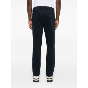 midnight blue twill weave garment dyed logo-engraved buttons low-rise belt loops coin pocket two side inset pockets two rear button-fastening pockets logo plaque slim cut concealed fly and button fastening Slim fit trousers Size and Fit - This piece fits true to size. We recommend you get your regular size. Model is 1,84m / 6ft 1in wearing size 32 (WAIST CM)