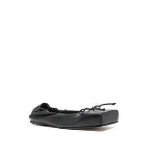 black calf leather smooth grain slip-on style elasticated trim front bow detailing square toe branded leather insole flat leather sole This piece comes complete with a protective dust bag. Les Ballerines Ballet Size and Fit - Heel 1 cm