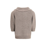 Lisa Yang’s Lailai Sweater is a sleek and minimal polo style featuring a V-neck collar, short sleeves and ribbed hem. An essential garment with a clean design, perfect for casual elegance.
