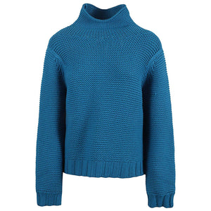 High neck sweater bluette, ovetto model, descended shoulder and large sleeve, over -weave. Wool blend high neck jumper Size and Fit - This piece fits true to size. We recommend you get your regular size. Model is 1,75m / 5ft 8in wearing size 40 (IT)