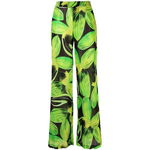 leaves-pattern wide-leg trousers from Louisa Ballou featuring black, bright green, cotton-silk blend, all-over graphic print, high waist, elasticated waistband, two side slit pockets and wide leg. Printed wide leg trousers Size and Fit - This piece fits true to size. We recommend you get your regular size. Model is 1,75m / 5ft 8in wearing size S