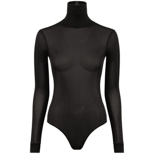 black logo patch to the rear signature four-stitch logo roll neck long sleeves fitted silhouette Just a reminder that this piece must be tried on over your own garments. High-neck bodysuit Size and Fit - This piece fits true to size. We recommend you get your regular size. Model is 1,75m / 5ft 8in wearing size 40 (IT)