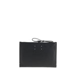 Maison Margiela’s Leather Pouch is an essential accessory with a strong character. Featuring a practical zipper closure, it is distinguished by the silver-colored script logo on the front, which adds a bright, contemporary touch. On the back, iconic contrasting white topstitching recalls the Maison’s unmistakable aesthetic. A loop handle completes the design, combining functionality and minimalist style.
