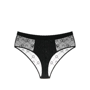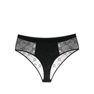black mesh design glitter detailing flocked finish signature Moonogram pattern elasticated logo waistband classic bottoms Just a reminder that this piece must be tried on over your own garments. Logo mesh brief Size and Fit - .