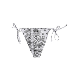 White swim briefs with black decorations, high waist with side laces, logo on the back. Bandana print bikini bottoms Size and Fit - This piece fits true to size. We recommend you get your regular size. Model is 1,75m / 5ft 8in wearing size S