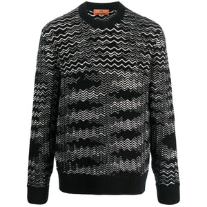 zig zag-pattern jumper from MISSONI featuring black/white, wool blend, signature zigzag woven design, ribbed band collar, long sleeves, crew neck and ribbed cuffs and hem. The item you receive may differ slightly from the item photographed. This is due to the artisanal nature with which all Missoni products are constructed.. Chevron wool blend sweater Size and Fit - This piece fits true to size. We recommend you get your regular size. Model is 1,84m / 6ft 1in wearing size 48 (IT)