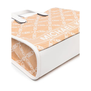 beige/optical white straw leather trim monogram jacquard open top two rolled top handles adjustable detachable shoulder strap main compartment internal logo patch internal zip-fastening pocket internal patch pockets logo-jacquard lining silver-tone hardware Gigi rafia large tote bag Size and Fit - Width 15,75 in / 40 cm