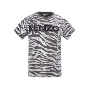 Kenzo Metal Animal Print T-Shirt in metalized gray and central logo, allover print, crew neck and short sleeves. Composition: 100% Cotton-Sku inner:23LU137