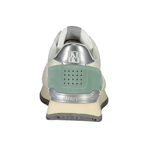 Step up your style game with these chic white sports sneakers from Napapijri. Designed not just for comfort but also to make a fashion statement, they feature striking contrast details and exclusive branding that set you apart from the crowd. Whether hitting the gym or stepping out for a casual day, these shoes are sure to compliment your active lifestyle.