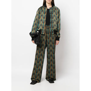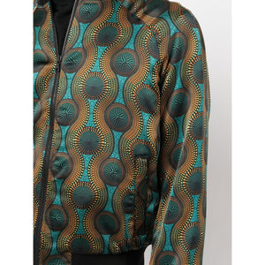 geometric-print silk bomber jacket from OZWALD BOATENG featuring olive green, multicolour, geometric-pattern print, ribbed band collar, front zip fastening, long raglan sleeves, two side welt pockets and ribbed edge. Printed silk bomber jacket Size and Fit - This piece fits true to size. We recommend you get your regular size. Model is 1,84m / 6ft 1in wearing size 38 (UK)