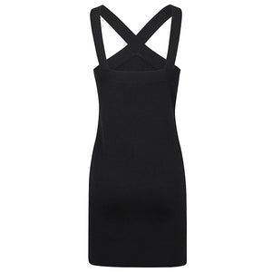 Short, black, solid color dress with wide crossover straps and straight hem. Viscose blend dress Size and Fit - This piece fits true to size. We recommend you get your regular size. Model is 1,75m / 5ft 8in wearing size S