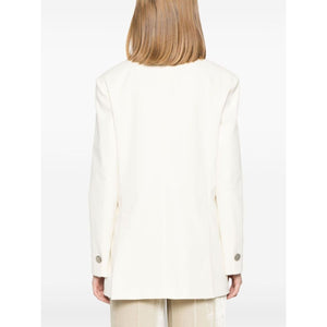 white cotton blend stretch-design peak lapels double-breasted button fastening long sleeves chest welt pocket two front flap pockets straight hem Crew cotton blend blazer jacket Size and Fit - This piece fits true to size. We recommend you get your regular size. Model is 1,75m / 5ft 8in wearing size S