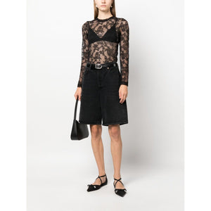 floral lace top from P.A.R.O.S.H. featuring black, stretch-design, floral-lace detailing, round neck, long sleeves and straight hem. Blend cotton t-shirt Size and Fit - This piece fits true to size. We recommend you get your regular size. Model is 1,75m / 5ft 8in wearing size S