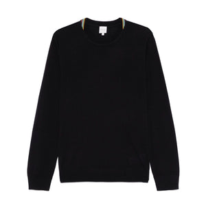 navy blue artist stripe pattern crew neck long sleeves Wool crewneck sweater Size and Fit - This piece fits true to size. We recommend you get your regular size. Model is 1,84m / 6ft 1in wearing size M