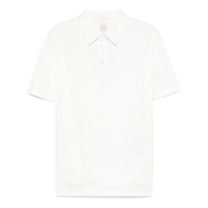 white short front button fastening short side slits short sleeves Logo cotton polo shirt Size and Fit - This piece fits true to size. We recommend you get your regular size. Model is 1,84m / 6ft 1in wearing size M