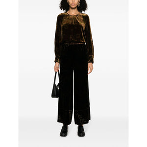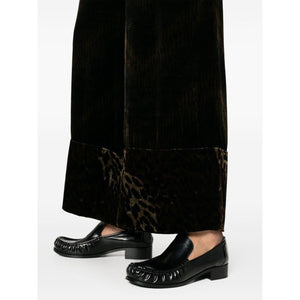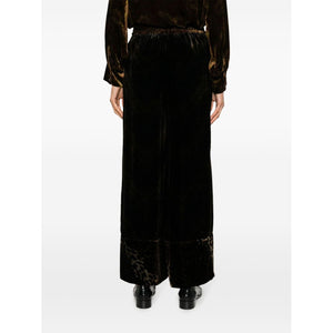dark green velvet leopard print wide leg elasticated waistband two side inset pockets Silk printed trousers